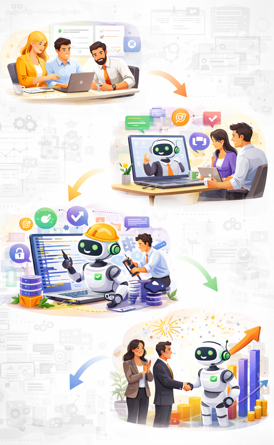 Tworzenie agenta AI w Bluassist to wspólny proces, którego celem jest realne dopasowanie do potrzeb Twojej firmy. Działamy krok po kroku:
